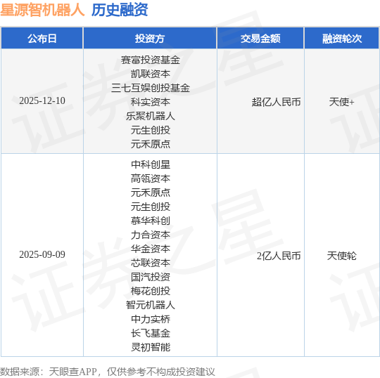 你的位置:扉页科技有限公司 > 国外破女大片第二十九部 > [投融资动态]星源智机器东说念主天神+融资, 融资额超亿东说念主民币, 投资方为赛富投资基金、凯联本钱等