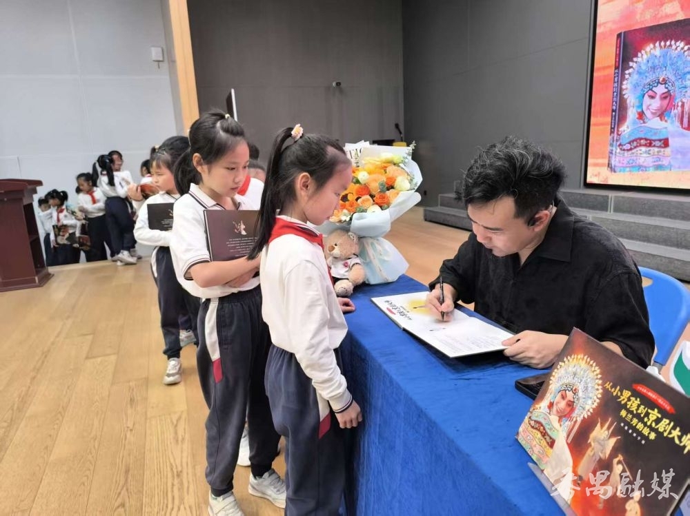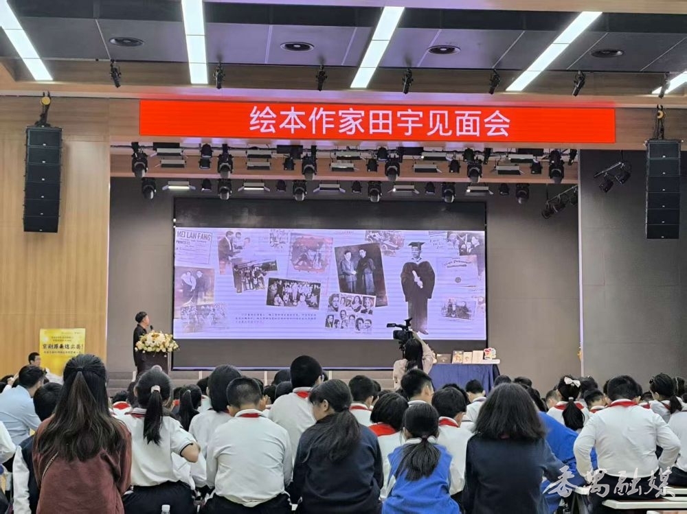 12月12日上昼,“京剧原本这样好意思!走进京剧众人梅兰芳的艺术东谈主生——绘本作者田宇碰头会” 在广州南边学院番禺附属小学体育馆举行。绘本作者田宇安分与同学们及家长代表张开了一场别开生面的书香对话。